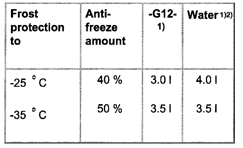 ^ If for climatic reasons greater frost protection required, the amount of G 12 can be increased, but only up to 60% (frost protection to about -40°C), otherwise frost protection and cooling effectiveness will be reduced.