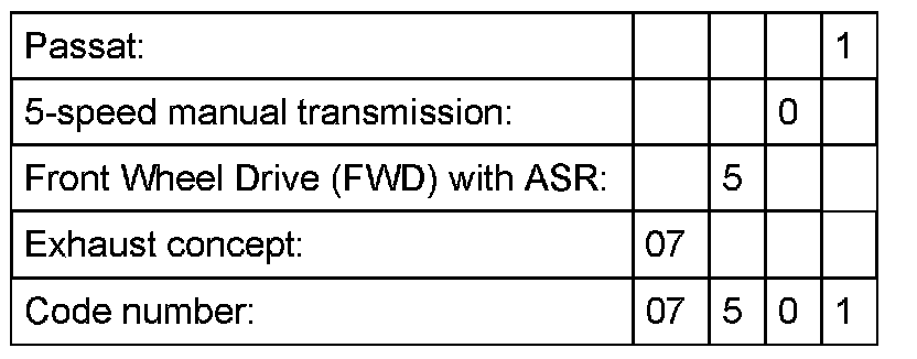The code number is compiled as shown in the following example: