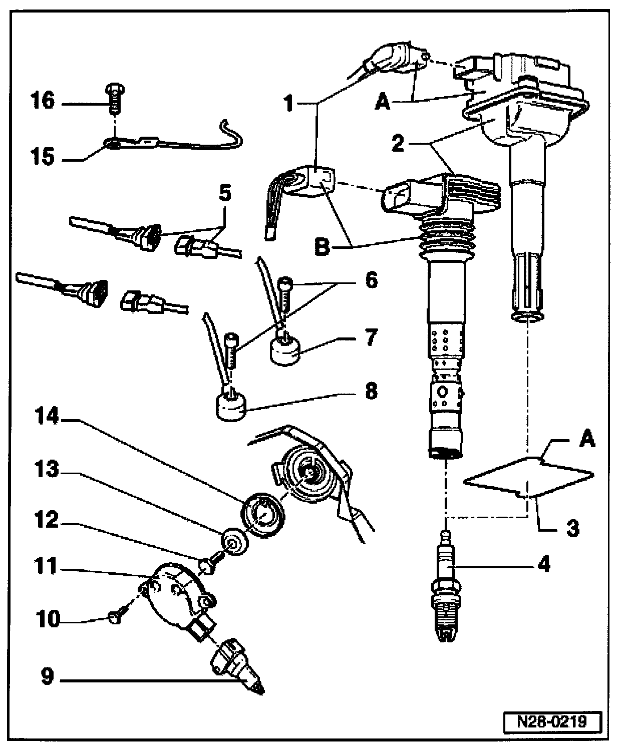 2 - Ignition coil with power output stage (-N70-, -N127-, -N291-, -N292-)