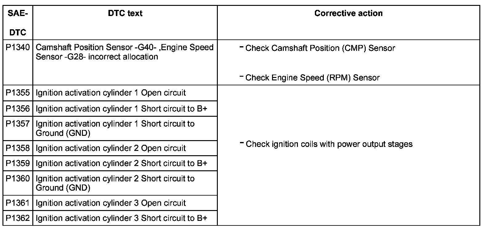 DTC P1340 - P1362: