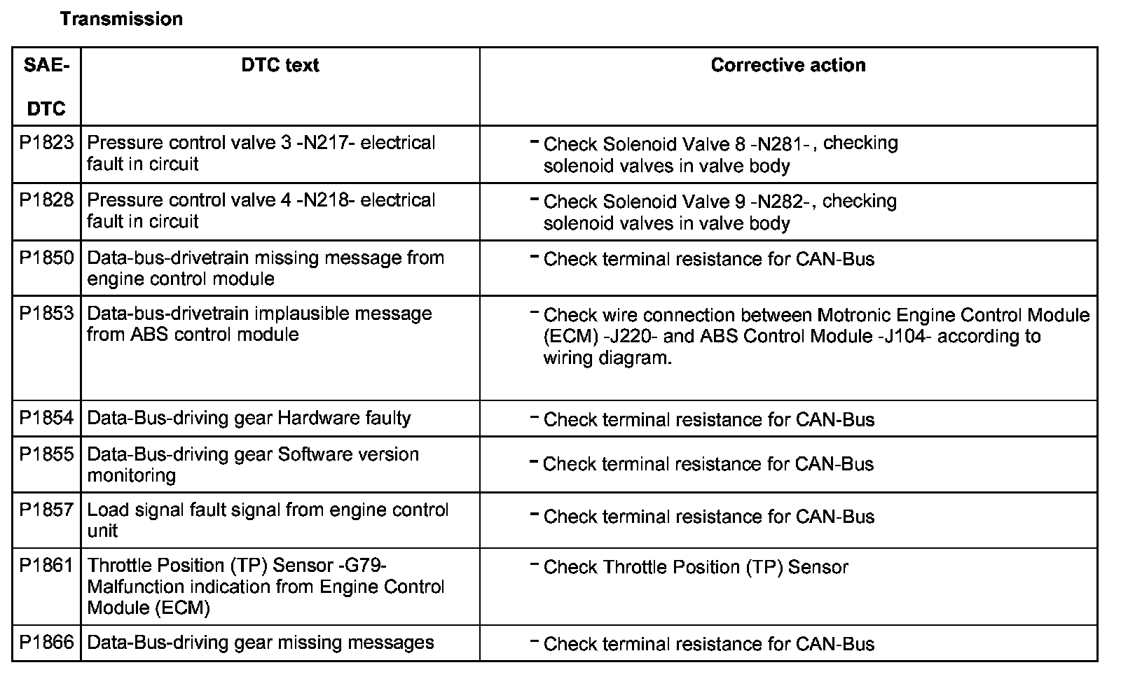 DTC P1823 - P1866: