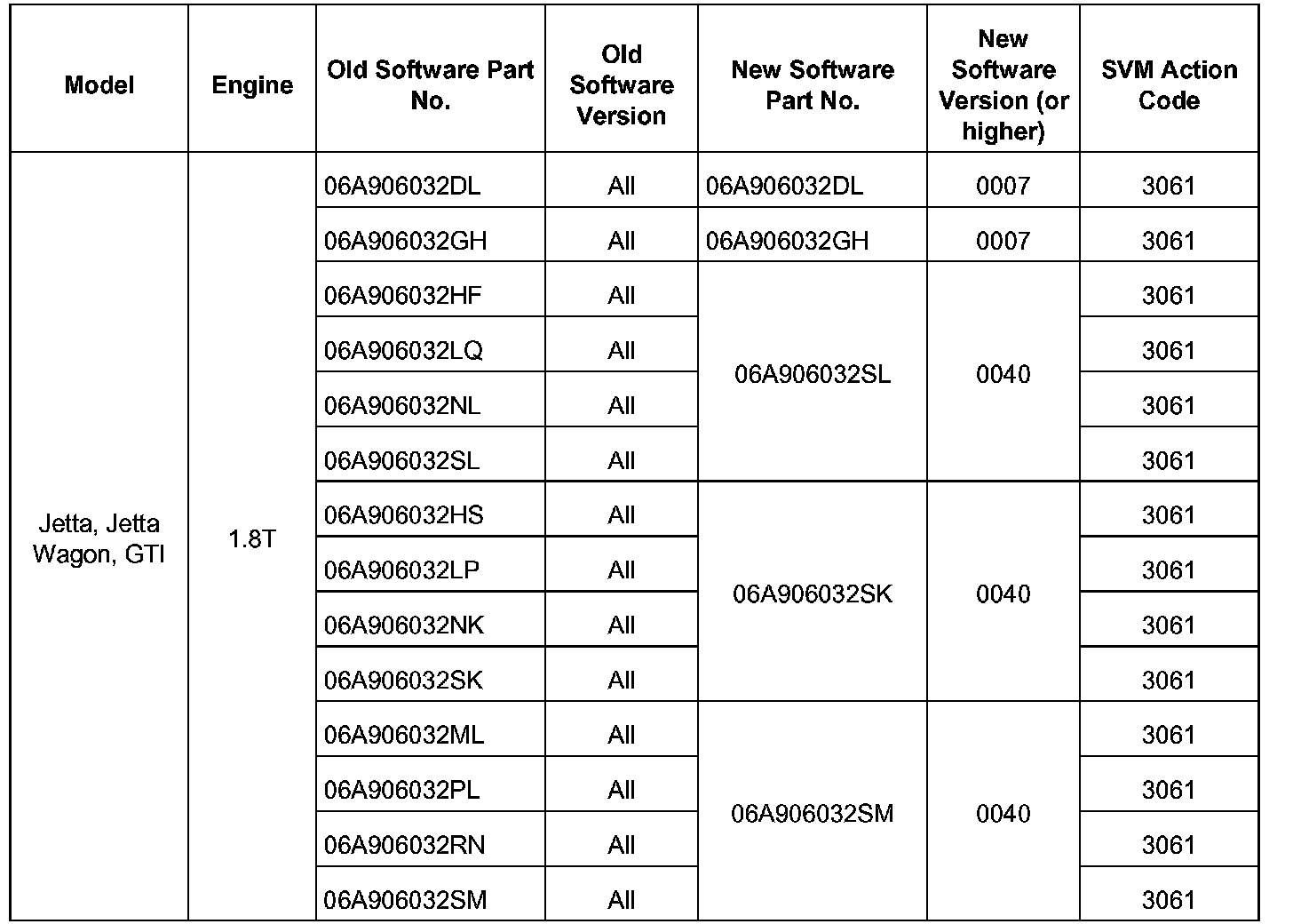 NOTE: An Update Programming procedure (flash) may overwrite any "TUNED" ECM or TCM programming. A "TUNED" ECM or TCM is described as any ECM or TCM altered so as to perform outside the normal parameters and specifications approved by Volkswagen Group of America.