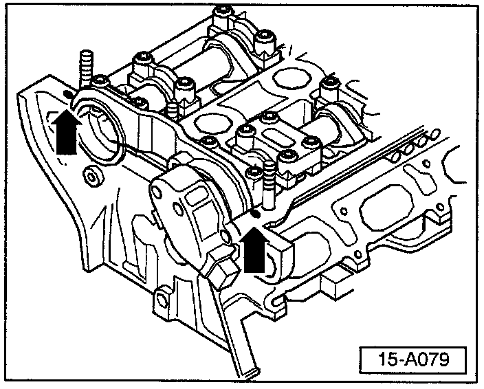 - Apply a small quantity of sealant Part No: AMV 174 004 01 to sides of joints (arrows) on upper sealing surface of cylinder head.