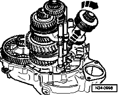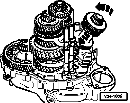 ^ Insert 1st-4th gear output shaft in direction of arrow.