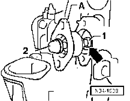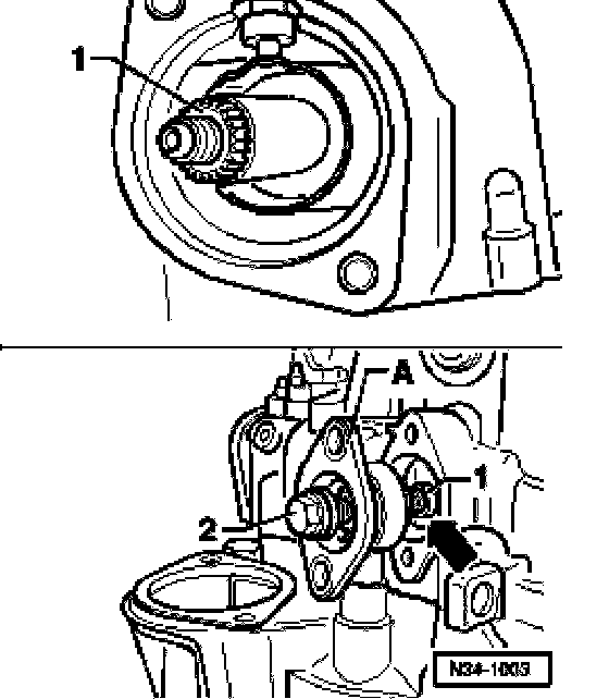 ^ Bolt cover plate -A- to lower selector shaft bearing -1- with bolt -2-, M8 x 60 mm.