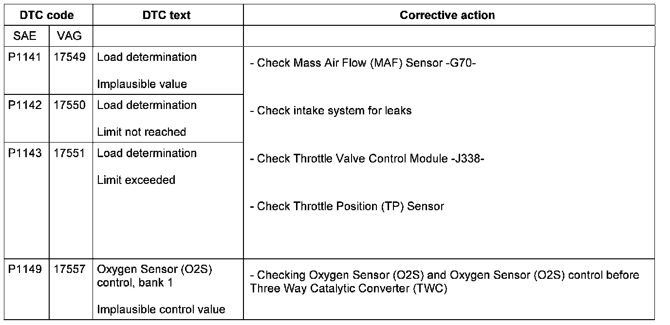 DTC P1141 - P1149: