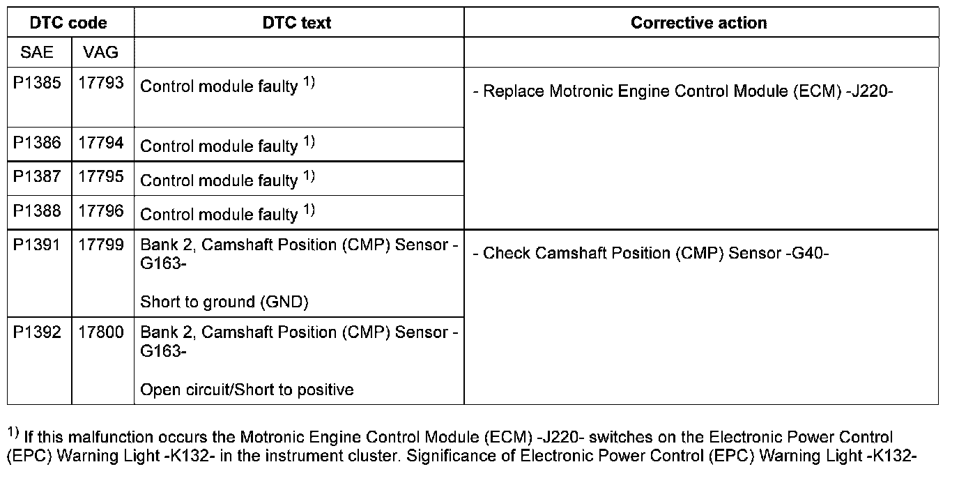 DTC P1385 - P1392: