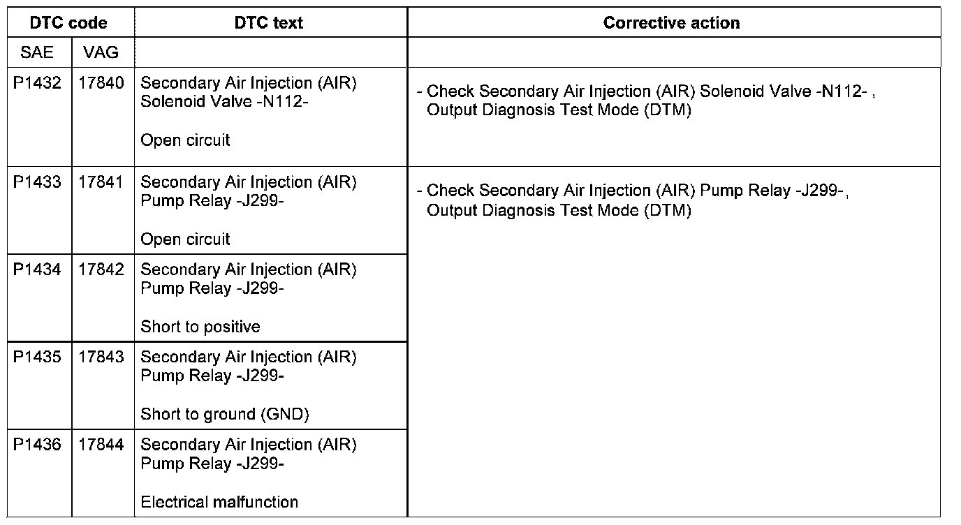 DTC P1432 - P1436: