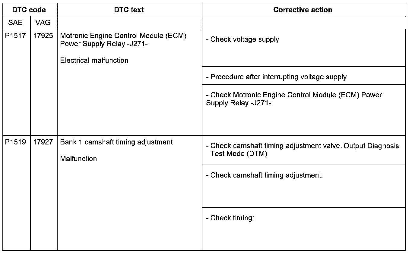 DTC P1517 - P1519: