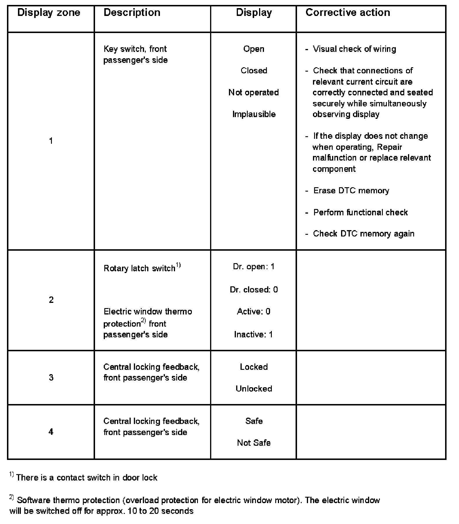 Display Zone 1 - 4: