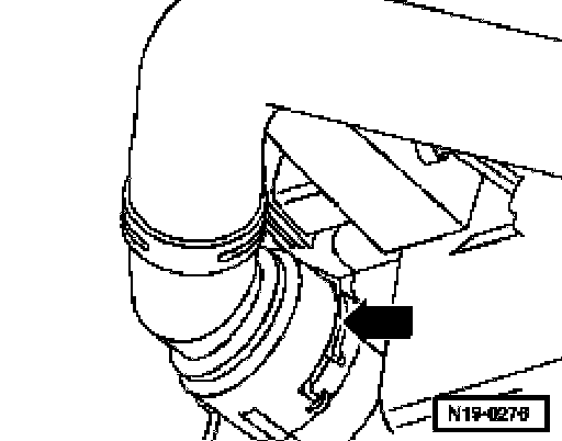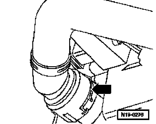 - Install lower coolant hose and secure with retaining clamp -arrow-.