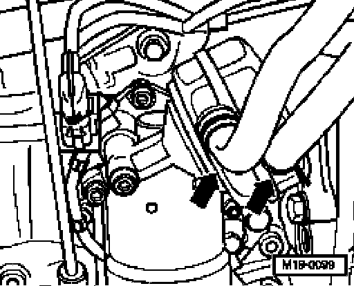 - Slide coolant hoses onto oil cooler unions -arrows- and secure with spring-type clamps.