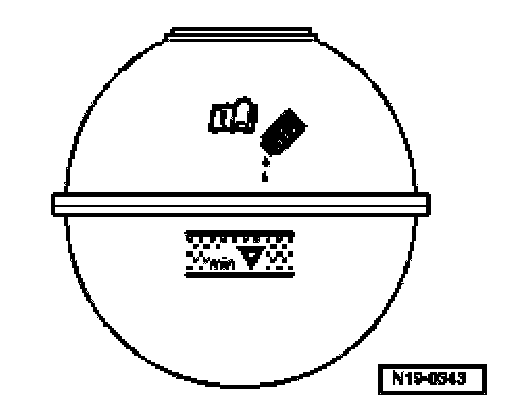 - Fill coolant slowly up to top mark of hatched field on expansion tank.