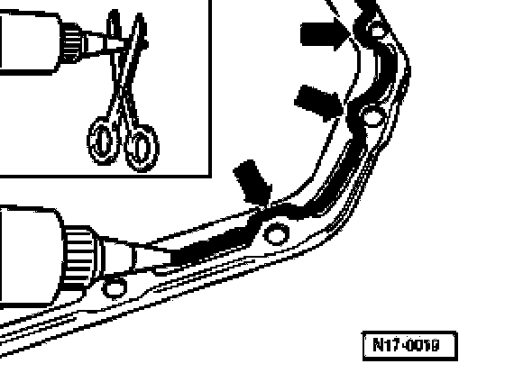 Note: The sealing compound bead must not be thicker, otherwise excess sealing compound will enter the oil pan and may block the oil suction pipe strainer.