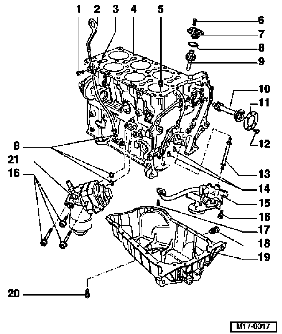 ^ If, when repairing an engine, metal shavings or large amounts of small metal particles are found in the engine oil, caused for example by partial seizure of crankshaft or Connecting rod bearings, perform the following work sequences to prevent consequential damage once repairs are complete: