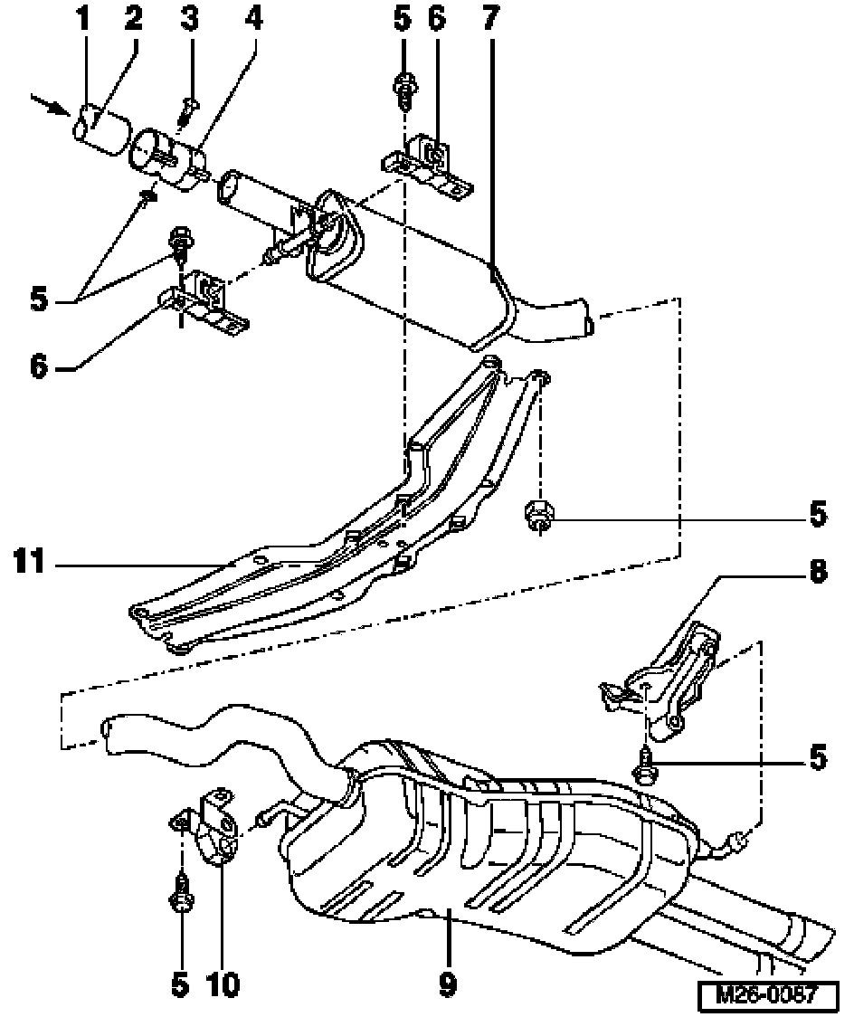 ^ As standard, forward muffler and rear muffler are installed as a single component. In repair cases forward muffler and rear muffler are supplied individually with a double clamp for connecting together.