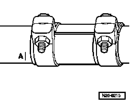 - Position new double clamp, as illustrated, approximately 5 mm from markings -A- and tighten.