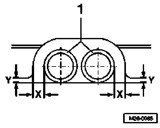 Mounting pins on exhaust pipe must run parallel with tunnel bridge (dimension -x- on left and right the same).