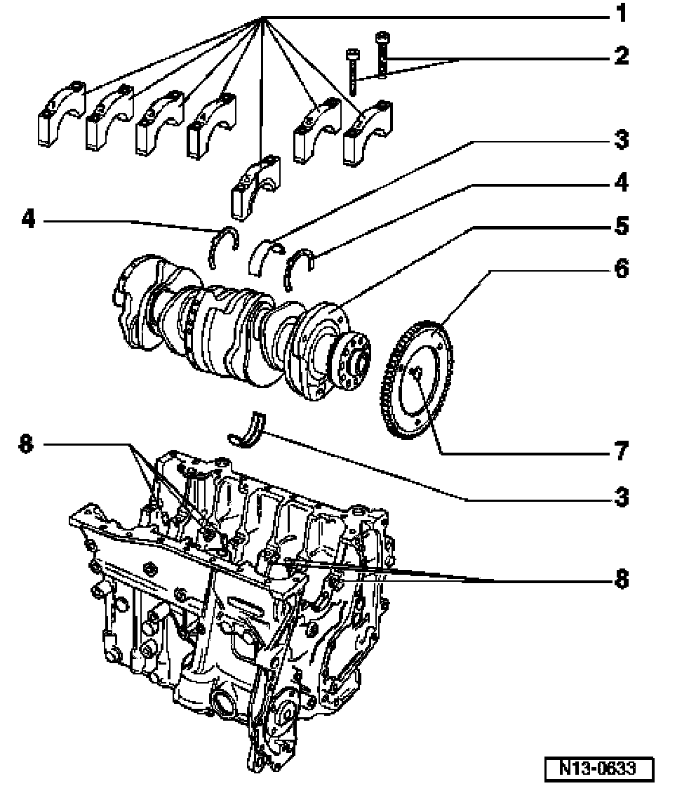 - Tighten securing bolts -2- to 10 Nm plus additional 90° (1/4 turn).