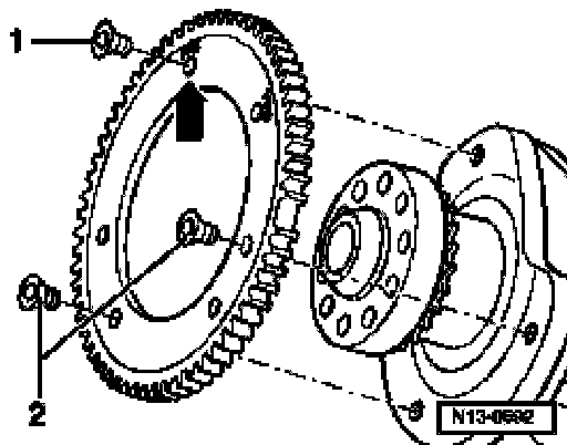 - Apply a thin coat of locking compound D 000 600 A2 to contact surfaces of crankshaft and sensor wheel for additional security.