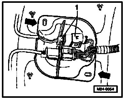 - Remove protective cover -arrows-and disconnect 4-pin connector (black) -1- to Oxygen Sensor (O2S) Behind Three Way Catalytic Converter (TWC) -G130-.