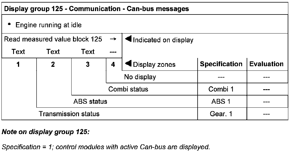 Measured value blocks, display groups 120...129 - Communication, evaluating