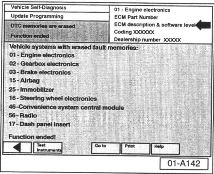 Failure to erase ALL fault memories may cause "Update - Programming" (flashing) procedure to fail!