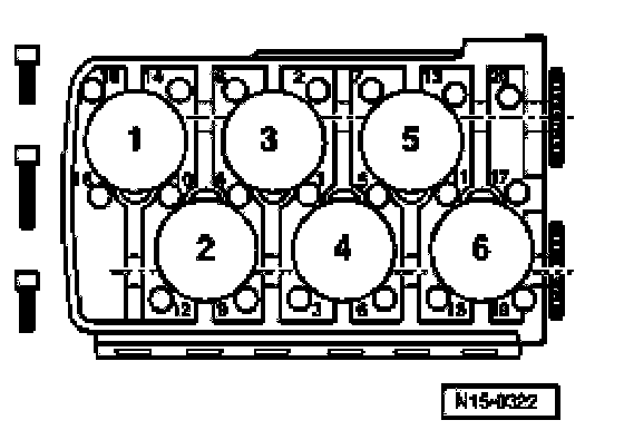 Note: The longer cylinder head bolts must be inserted in the middle holes of the cylinder head.