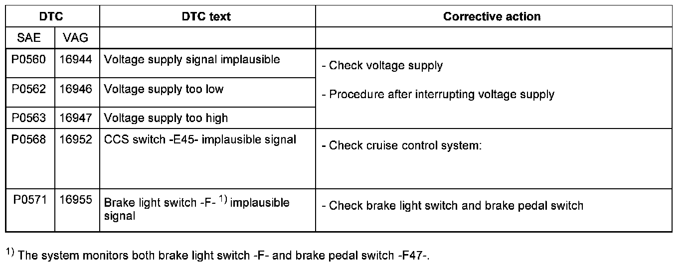 DTC P0560 - P0571: