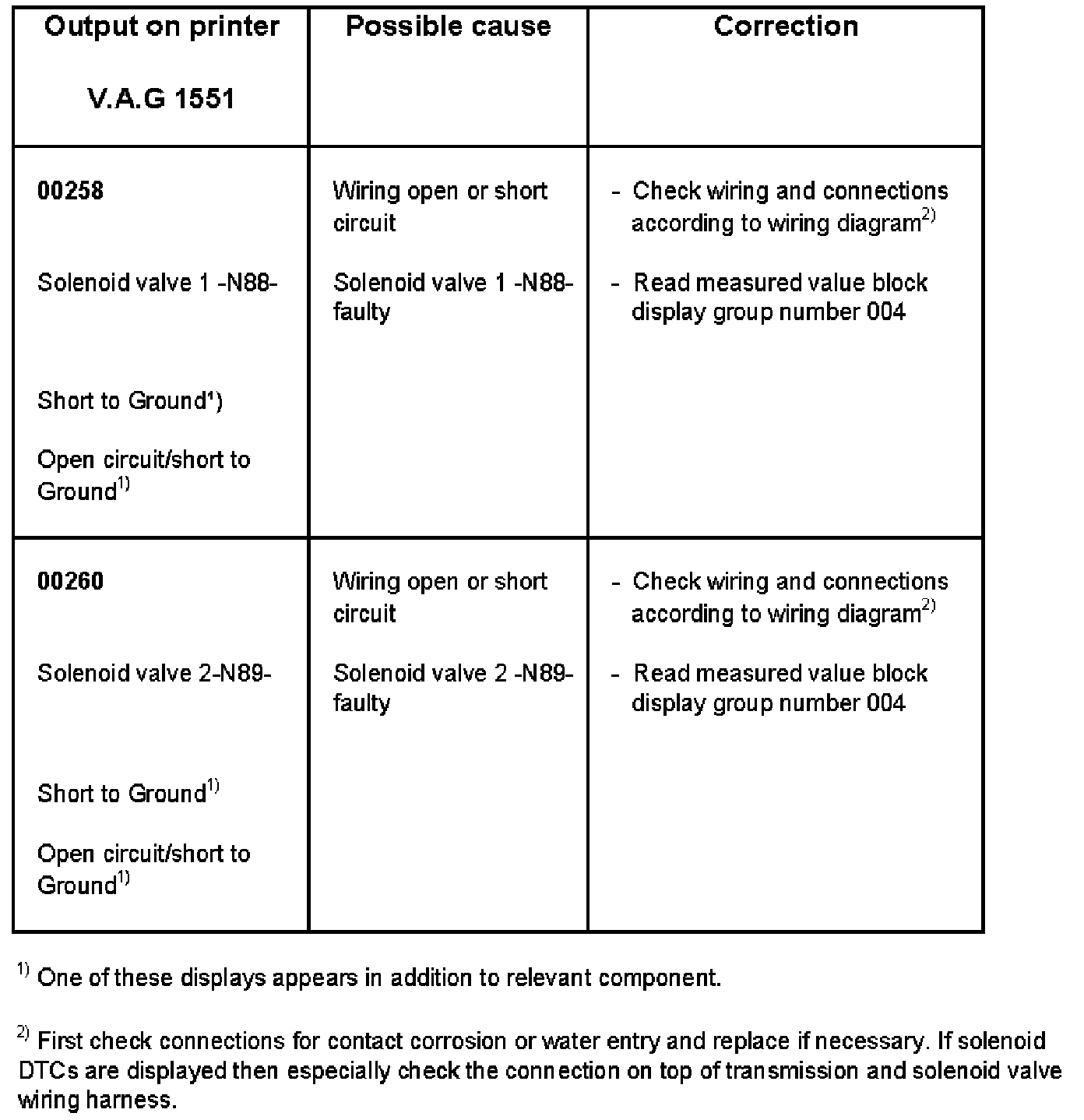 DTC 00258 - 00260: