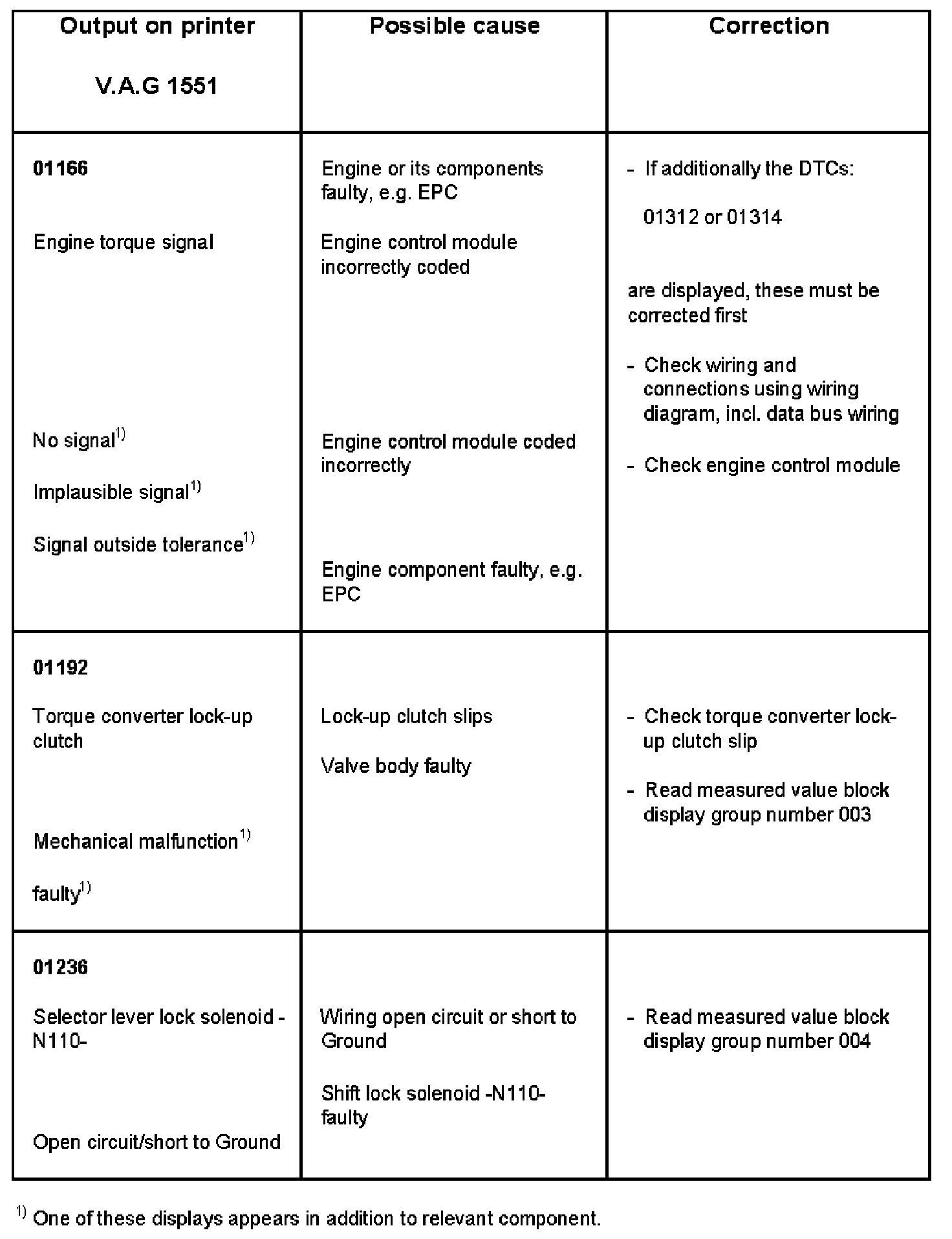 DTC 01166 - 01236: