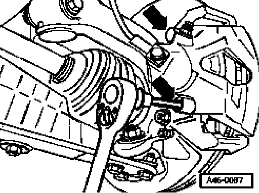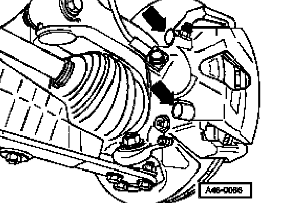 - Remove both guide pins -arrows- from brake caliper.