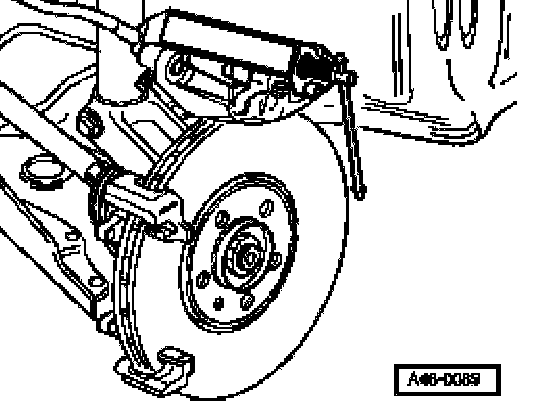 - Remove brake caliper housing and secure with wire so that the weight of the brake caliper does not stress or damage the brake hose.