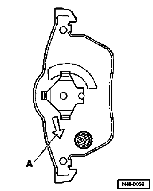 When installed the arrow on the brake pad backplate -A- must point downward. Make sure this is installed correctly!