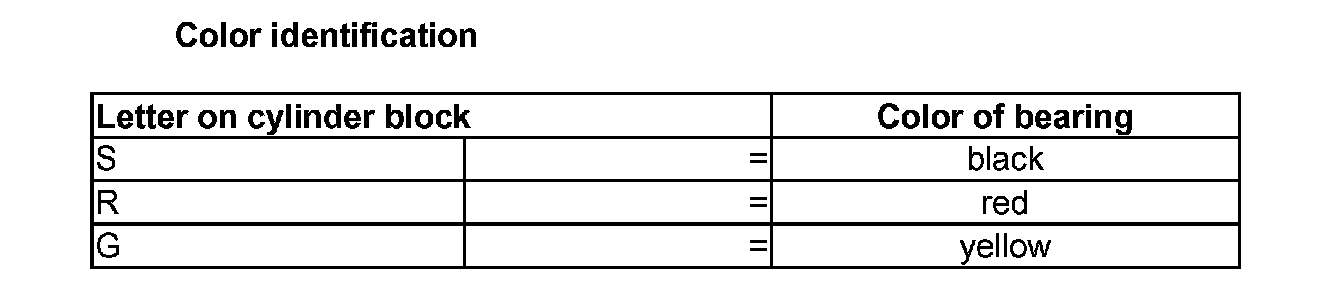 The letters marked on lower sealing surface of cylinder block identify which bearing thickness must be installed in which location.