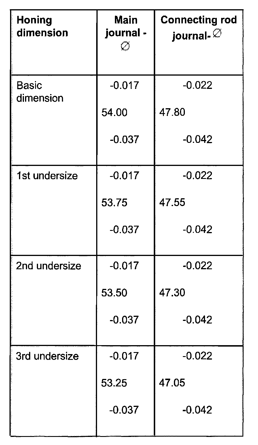 Crankshaft dimensions