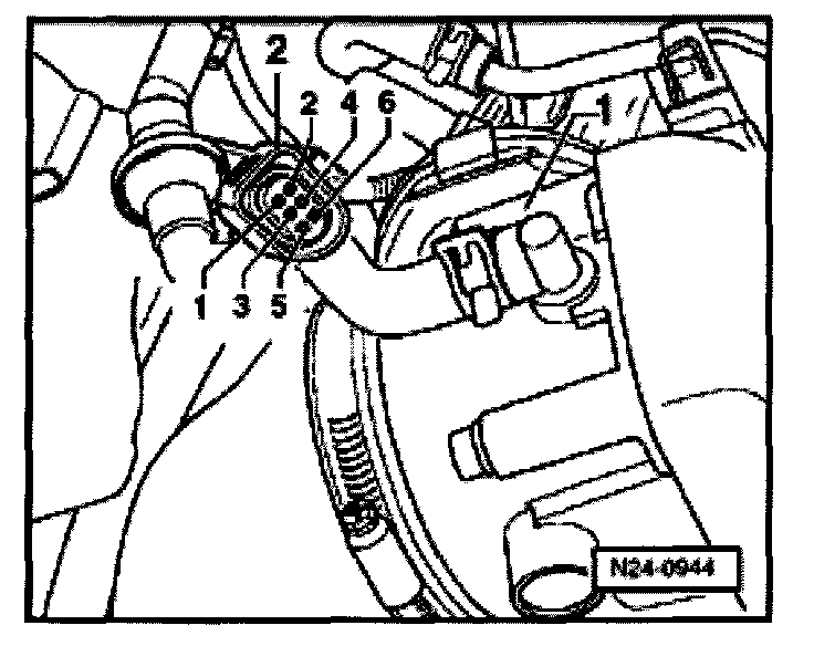 - Pull 6-pin connector -2- off throttle valve control module -1-.