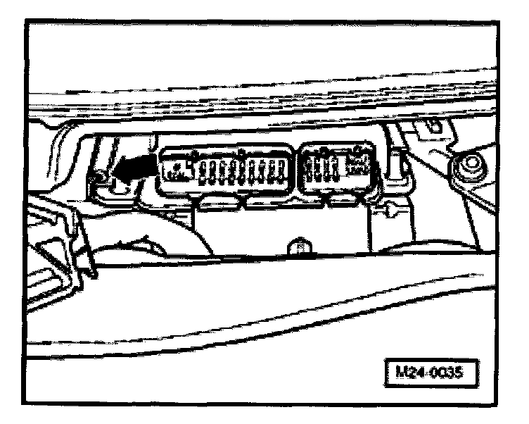 - Press securing bracket (clip) (arrow) to left and lift out control module.