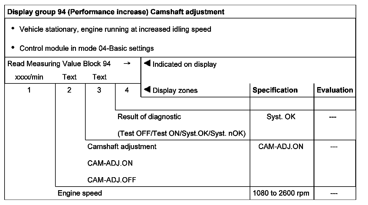 Display group 94 (Performance increase) Camshaft adjustment