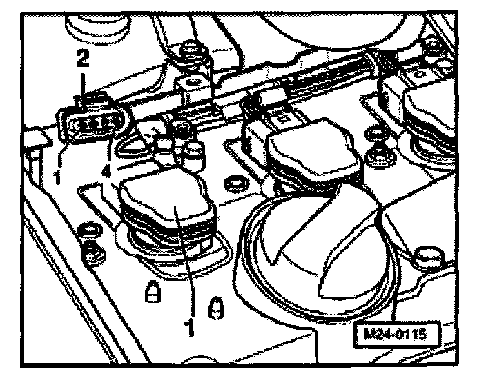 - Pull 4 pin connector -2- off ignition coil to be checked -1-.