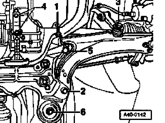 - Remove hex bolt -3- on control arm.