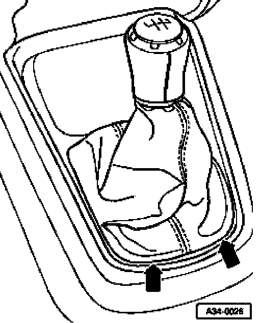 ^ Pull shift lever cover off center console (arrow).