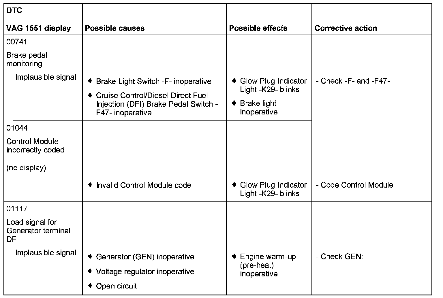 DTC 00741 - 01117: