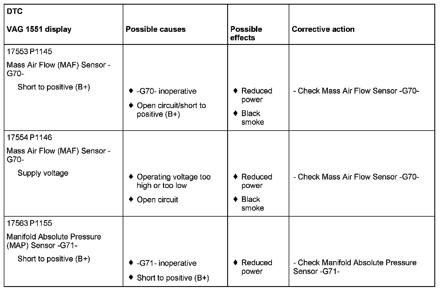 DTC P1145 - P1155: