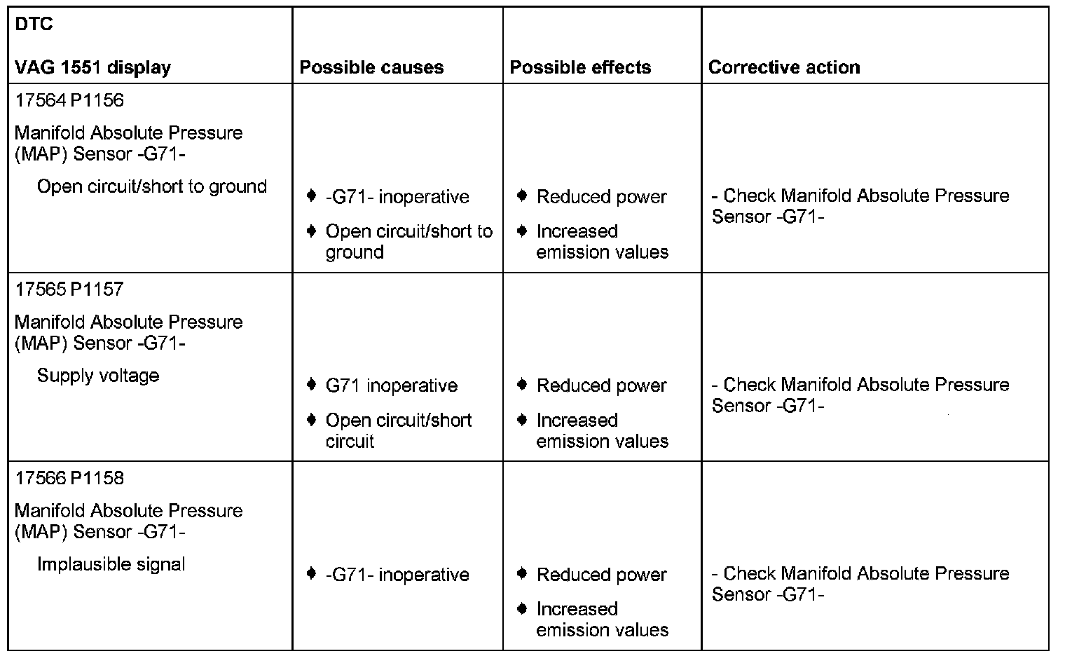DTC P1156 - P1158: