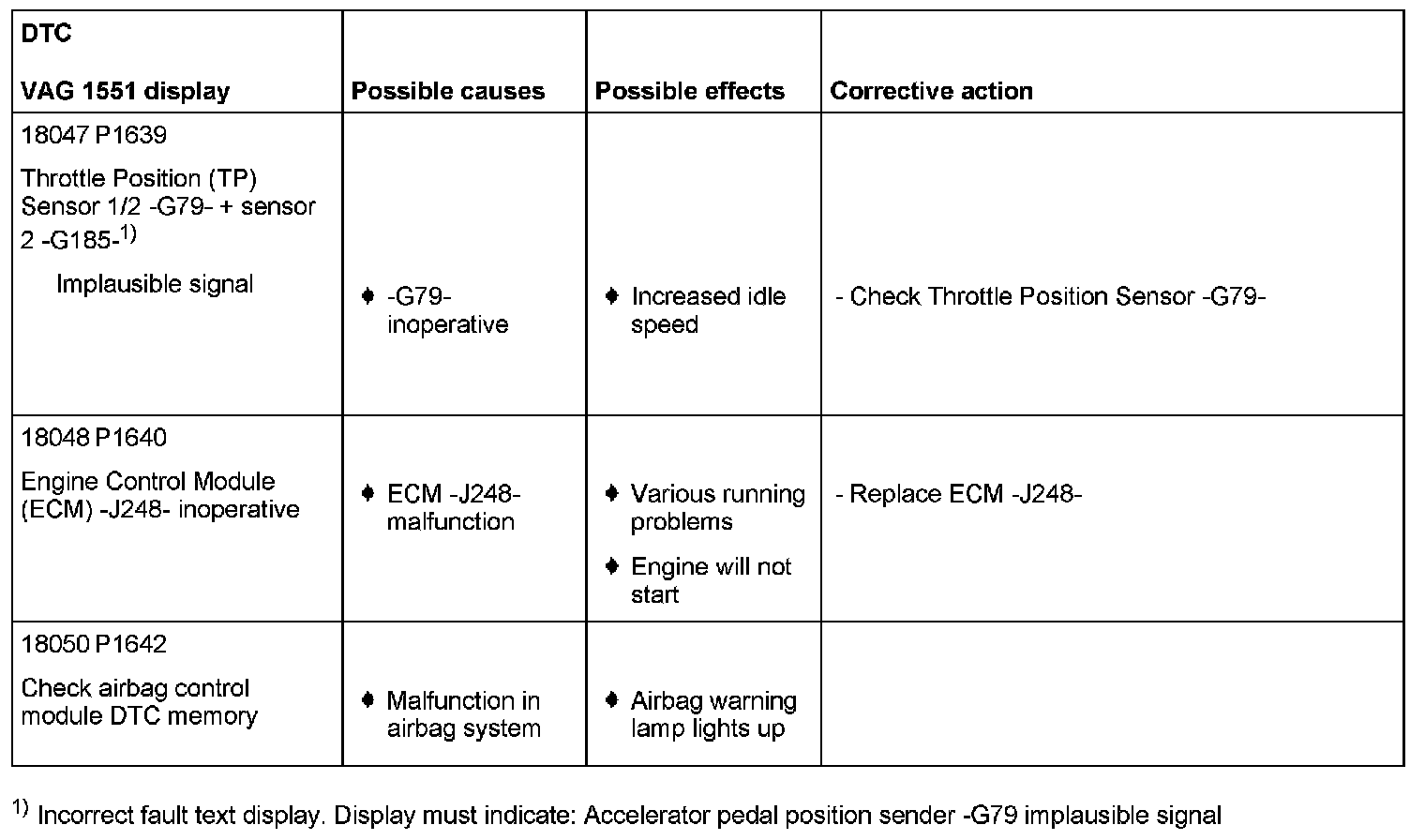 DTC P1639 - P1642: