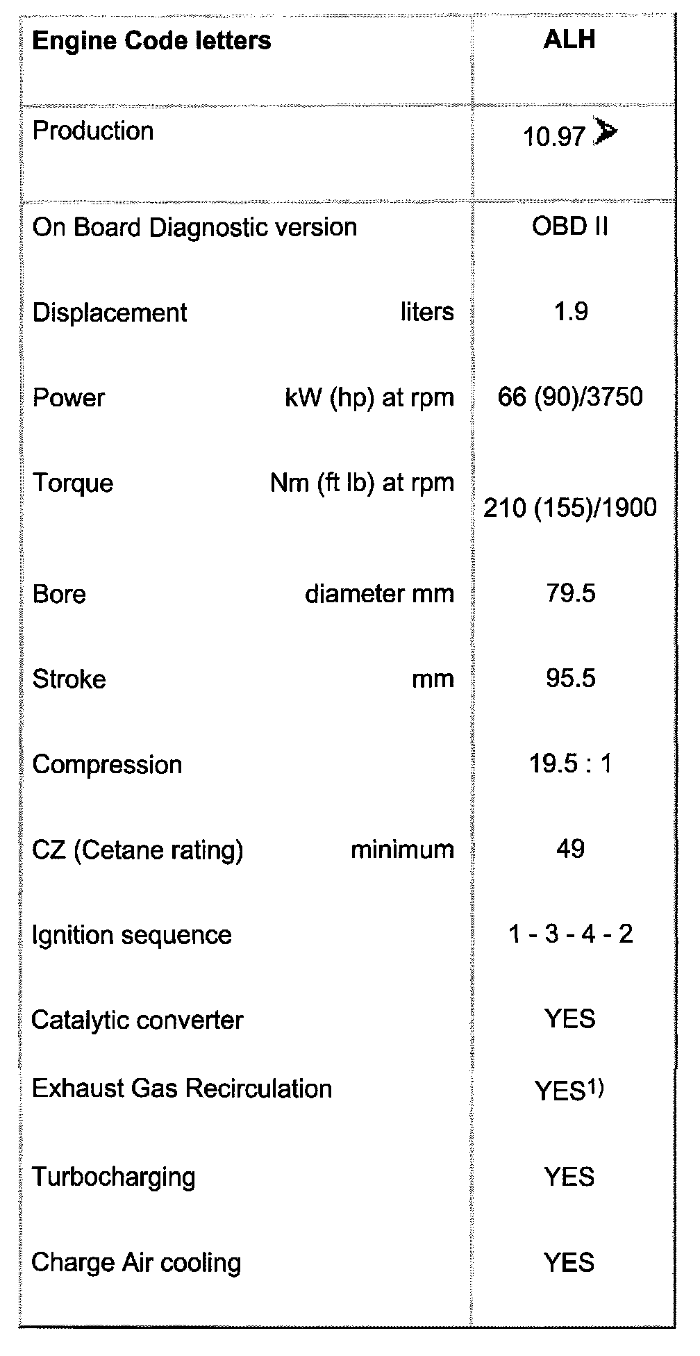 Engine number ("Engine code letters" and "Serial number") can be found between the Diesel injection pump and the exhaust manifold on the engine block.