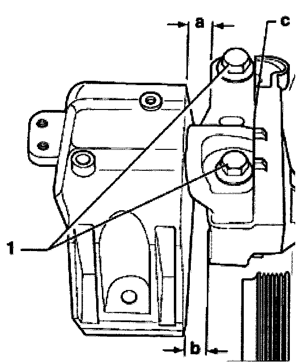 3. Mount to engine bracket 1) 60 Nm (44 ft. lbs.) + 90° (1/4 turn.)