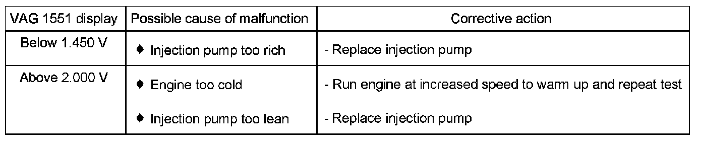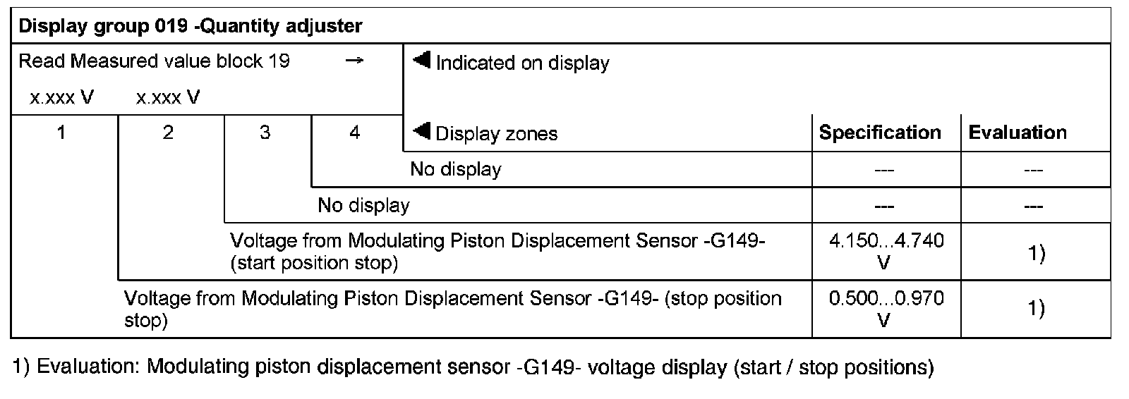Evaluation: Modulating piston displacement sensor -G149- voltage display (start / stop positions)