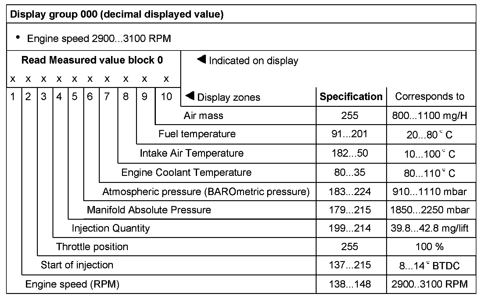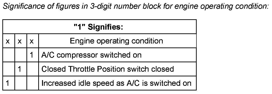 Significance of figures in 3-digit number block for engine operating condition: